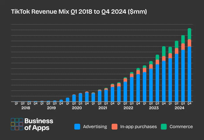 即便TikTok在美國市場的命運尚未明朗,該應用在全球其他地區的增長趨勢依舊強勁。Business of Apps 預計TikTok在2025年的總營收有望突破300億美元,廣告平臺和電商業務仍將是推動增長的雙引擎。
