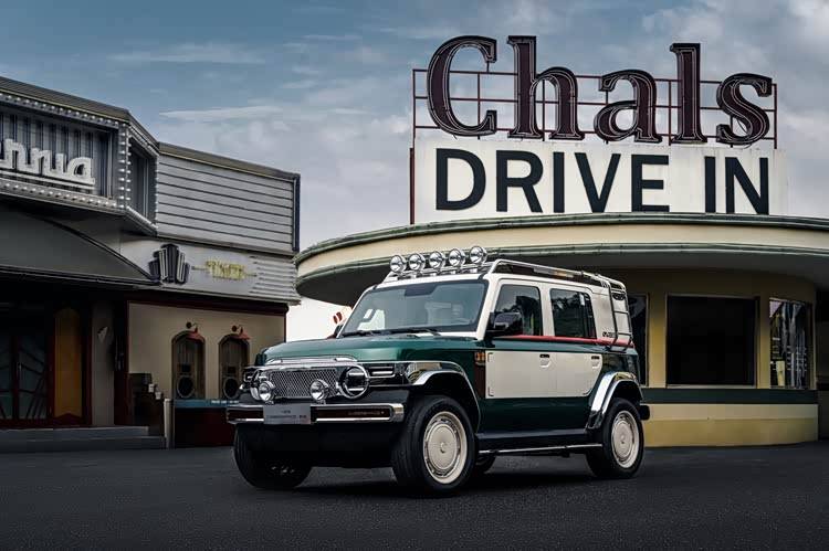 V23的設計完美地詮釋了這一點。它的靈感源自上世紀70年代經典SUV的“探索精神”,但它并未照搬任何一款具體的車型。它所做的,是提煉那個時代最具代表性的設計元素——方盒子造型、圓形大燈、外掛式備胎——然后用最現代的工藝和材料進行重塑。