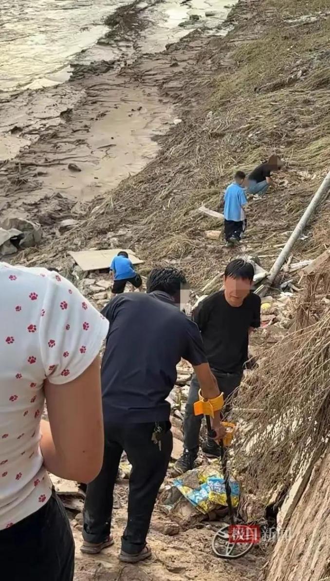 洪水剛退,更奇幻的一幕上演,有人帶著金屬探測儀,在淤泥里瘋狂“掃雷”,就為撿漏那些,被淤泥掩蓋的大金鐲子,金項鏈。