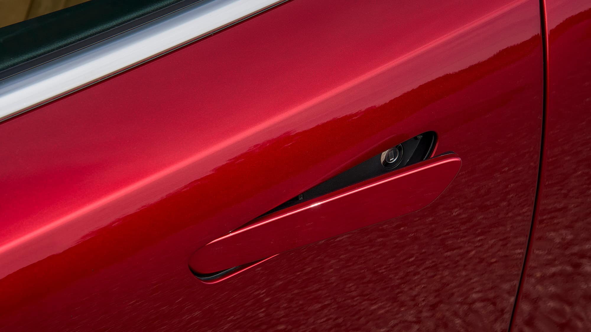 車門把手采用隱藏式設計,車窗為無框設計,突出了轎跑風格。可惜的是,行李廂空間卻偏小:馬自達稱標準狀態下僅330升。雖然實際看起來還不錯,但這個數值仍顯保守。