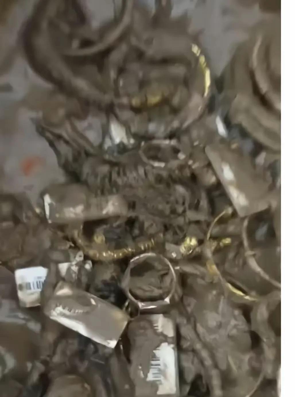 據金店負責人葉先生介紹,初步統計有近20公斤的黃金被沖走,按照當前金價,價值上千萬元。這對于金店來說,無疑是一場巨大的災難。目前,店員們僅僅從店門口及附近的淤泥中撿回了約1公斤的首飾,而那個裝有新貨、舊料和現金的保險柜,至今仍下落不明。