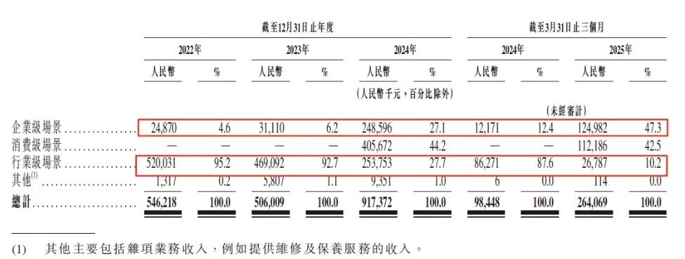 按收入占比劃分,當前云天勵飛的收入主要由企業級和消費級業務構成,兩者合計占比接近90%,并逐漸取代了云天勵飛最初實現商業化的行業級業務。
