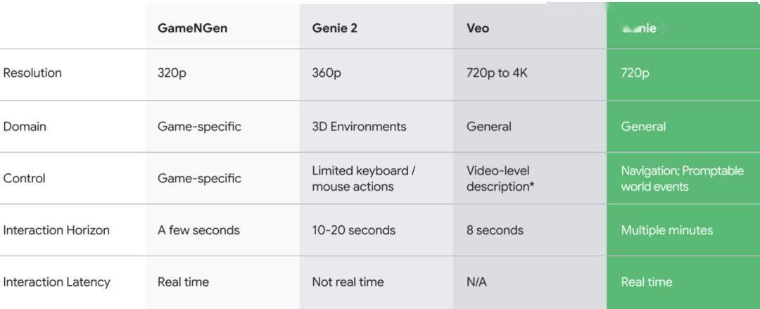 圖丨Genie 3 的重要參數對比(DeepMind)